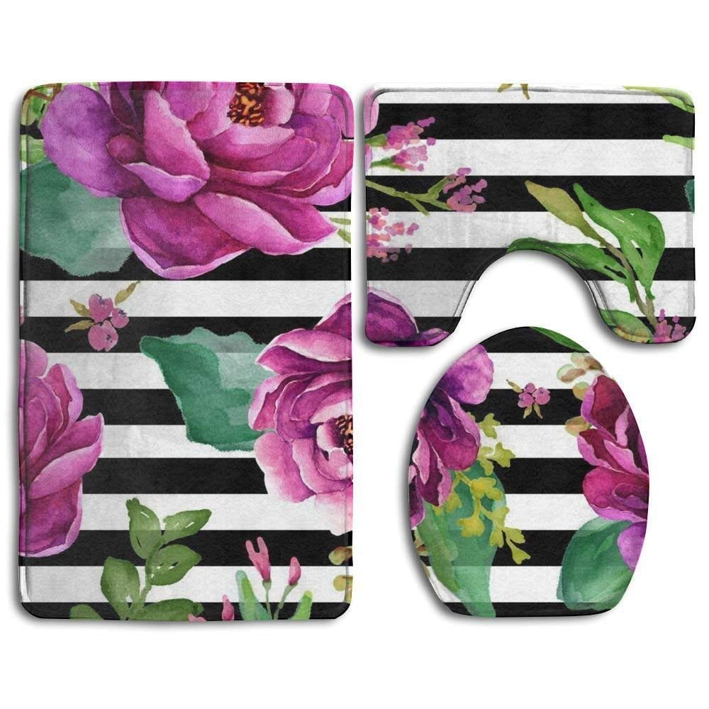 ABPHQTO Peony And Roses Black White Stripes Flower 3 Piece ...