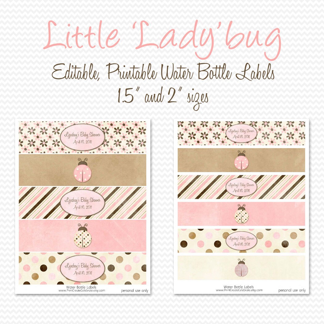 Water Bottle Labels Pink and Brown Ladybug Baby Shower ...