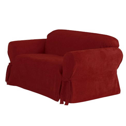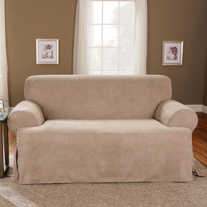 Sure Fit Loveseat Slipcover Installation. The loose fit of this couch slipcover creates more flexibility in terms of fit, and the look is even lounge-ier. The Sure Fit Soft Suede Loveseat Slipcover is designed to fit the kind of sofa everyone loves to curl up in. Part of the Pet Bed and Slipcover collection.