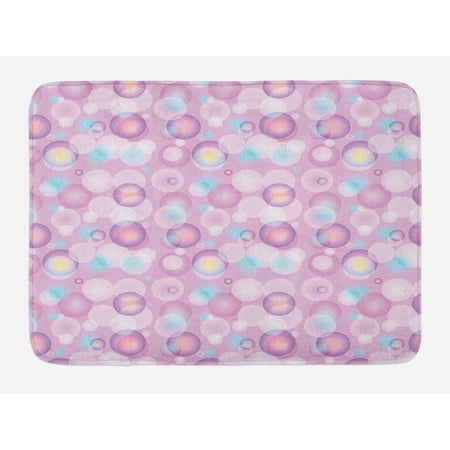 Pale Pink Bath Mat, Abstract Bubble Spheres with Color ...