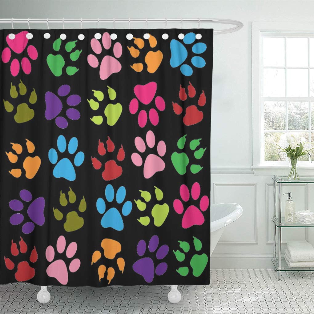 CYNLON Green Cat and Dog Paw in Pink Blue Purple Bathroom ...