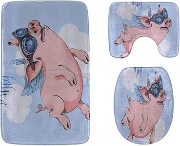 Amazon.com: Toilet Lid Cover and Rug Set Cartoon Pink Pig ...