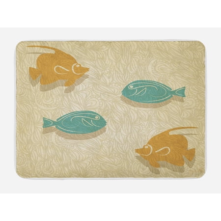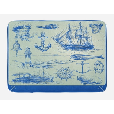 Fishing Themed Bathroom Rugs. Discover bath mats to brighten your day at Urban Outfitters. The deep denim blue of the pattern looks so gorgeous on the off cream background with vintage style.
