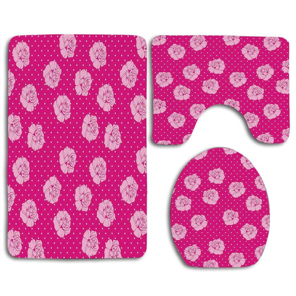 CHAPLLE Pink Star White 3 Piece Bathroom Rugs Set Bath Rug ...